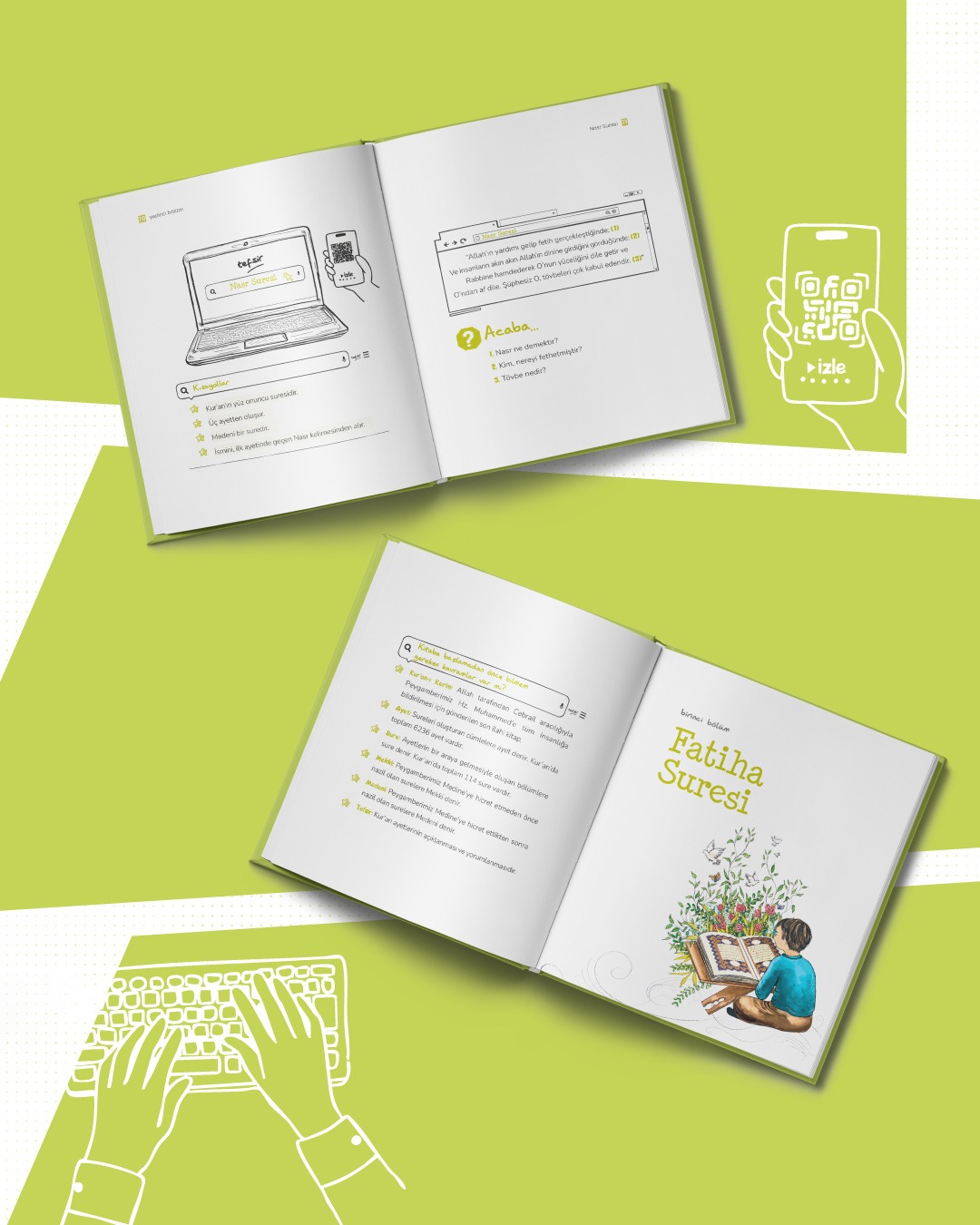 Ayrıca her bölümde yer verilen karekodlar (QR kodlar), surelerin Arapça okunuşlarını dinleme ve izleme imkânı veriyor; böylece çocukların öğrenme süreci işitsel ve görsel olarak da destekleniyor. Bu eserde örneklendiği üzere Türkiye Diyanet Vakfı çocuk kitapları ve genç kitapları yayımlarken dijital çağın sunduğu fırsatları da verimli şekilde kullanıyor.